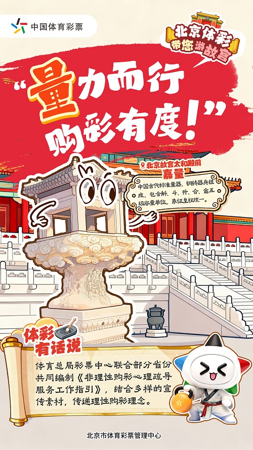 《“量”力而行,购彩有度》:以故宫嘉量为喻,倡导安心购彩、适度参与的理念,强调“心中有度,行为有节”。