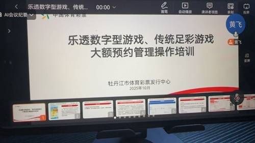 为规范体育彩票销售行为,加强风险防控,提升对大额投注的管理与服务能力,牡丹江市体育彩票中心于10月13日至14日,组织召开了全市体彩实体店乐透数字型游戏、传统足彩游戏大额预约管理操作线上培训。