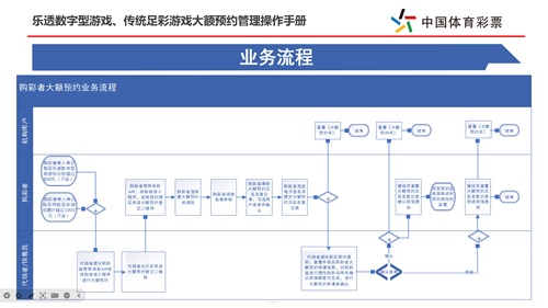 本次培训系统讲解了大额预约管理的适用范围、乐透数字型游戏和传统足彩游戏的具体业务规范、完整的业务流程以及各相关方的角色职责。培训中对代销者与购彩者在预约过程中的操作步骤进行了详尽演示,并重点强调了关键注意事项。