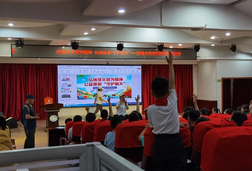 在桂平市江口镇中心小学和桂平市紫荆镇中心小学,授课老师以通俗易懂的语言,围绕防溺水核心要点系统展开讲解,并结合有奖问答开展互动。同时,特别强调了“见义智为”精神。通过案例讲解,引导同学们树立“安全第一”的救援理念——在遇到他人溺水时,应当在保护自身安全的情况下,采取科学合理的救援方法。