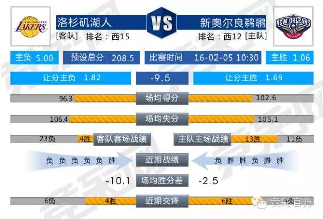 湖人 VS 鹈鹕(-9.5)