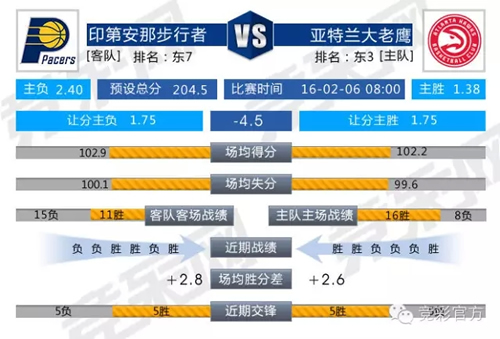 明天步行者的弱点在内线,在马辛米和斯塔基伤停的情况下,特纳、乔丹-希尔、阿伦成为球队内线的主要轮换阵容,三人虽然均有不错的表现,但统治力无法与老鹰内线抗衡,因此乔治、埃利斯、乔治-希尔三人的责任将更重;老鹰近期打出了不错的竞争力,且球队目前阵容齐整,明天主场作战可有期待。综上,本场在竞彩让分玩法开出老鹰主让4.5分的情况下,笔者推荐其赢球过关。