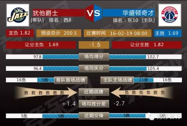 犹他爵士 VS 华盛顿奇才(-1.5)