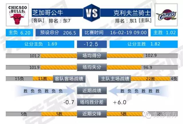 芝加哥公牛 VS 克利夫兰骑士(-12.5)